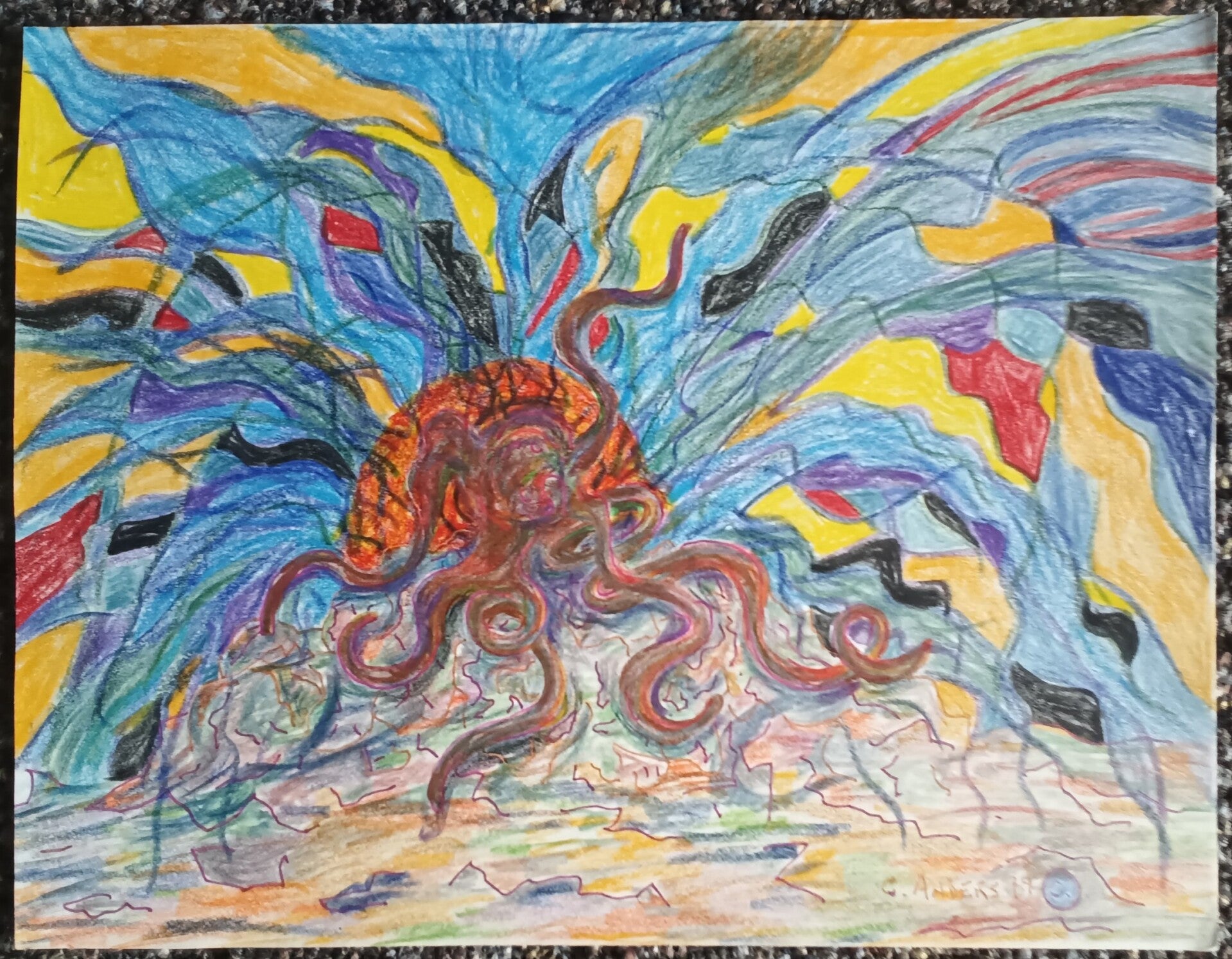 original drawing 9x12 inches ink and colored pencils on paper