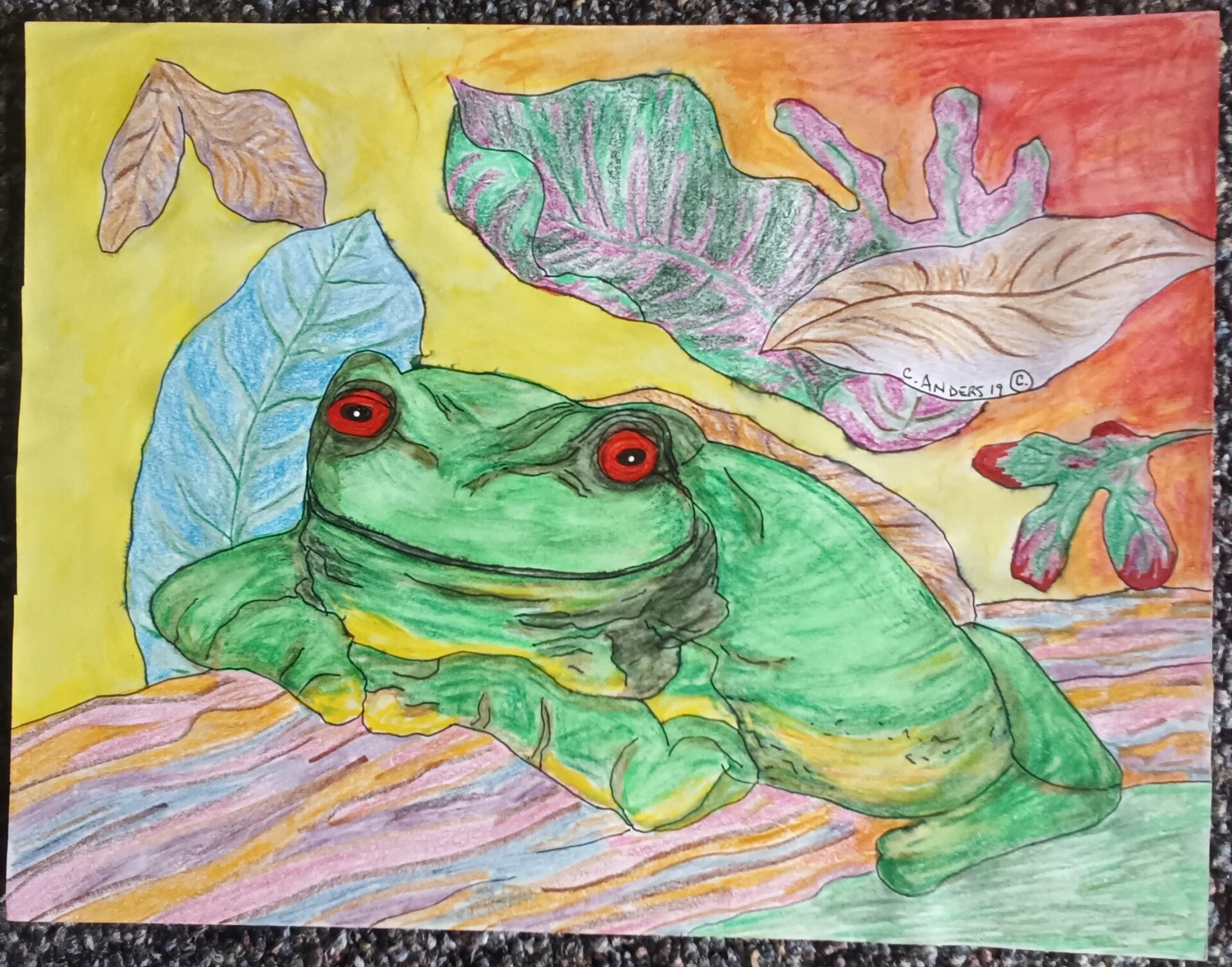 original drawing 9x12 inches ink and colored pencils on paper