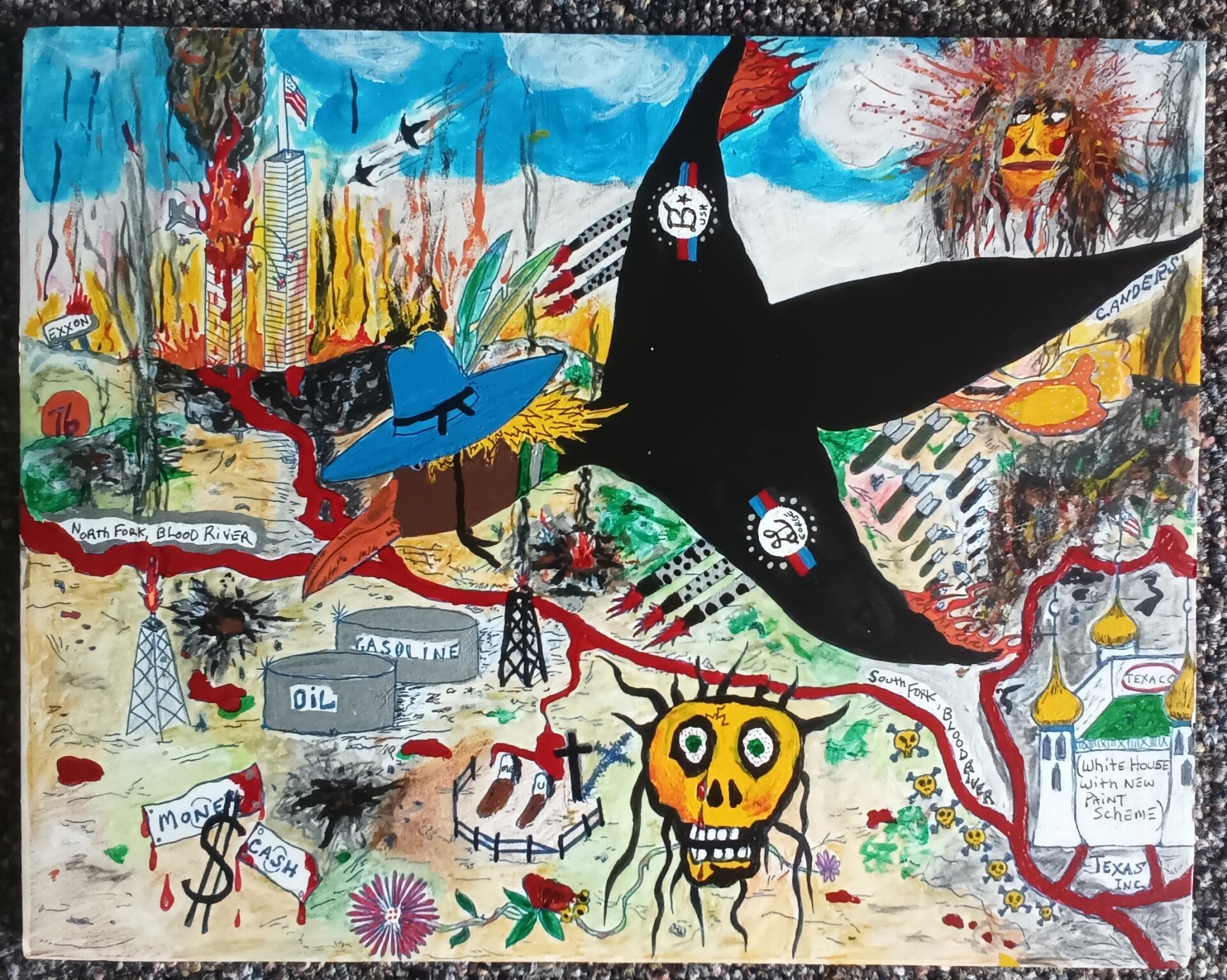 original drawing 9x12 inches dry mounted on foamboard ink, acrylics and colored pencils on paper