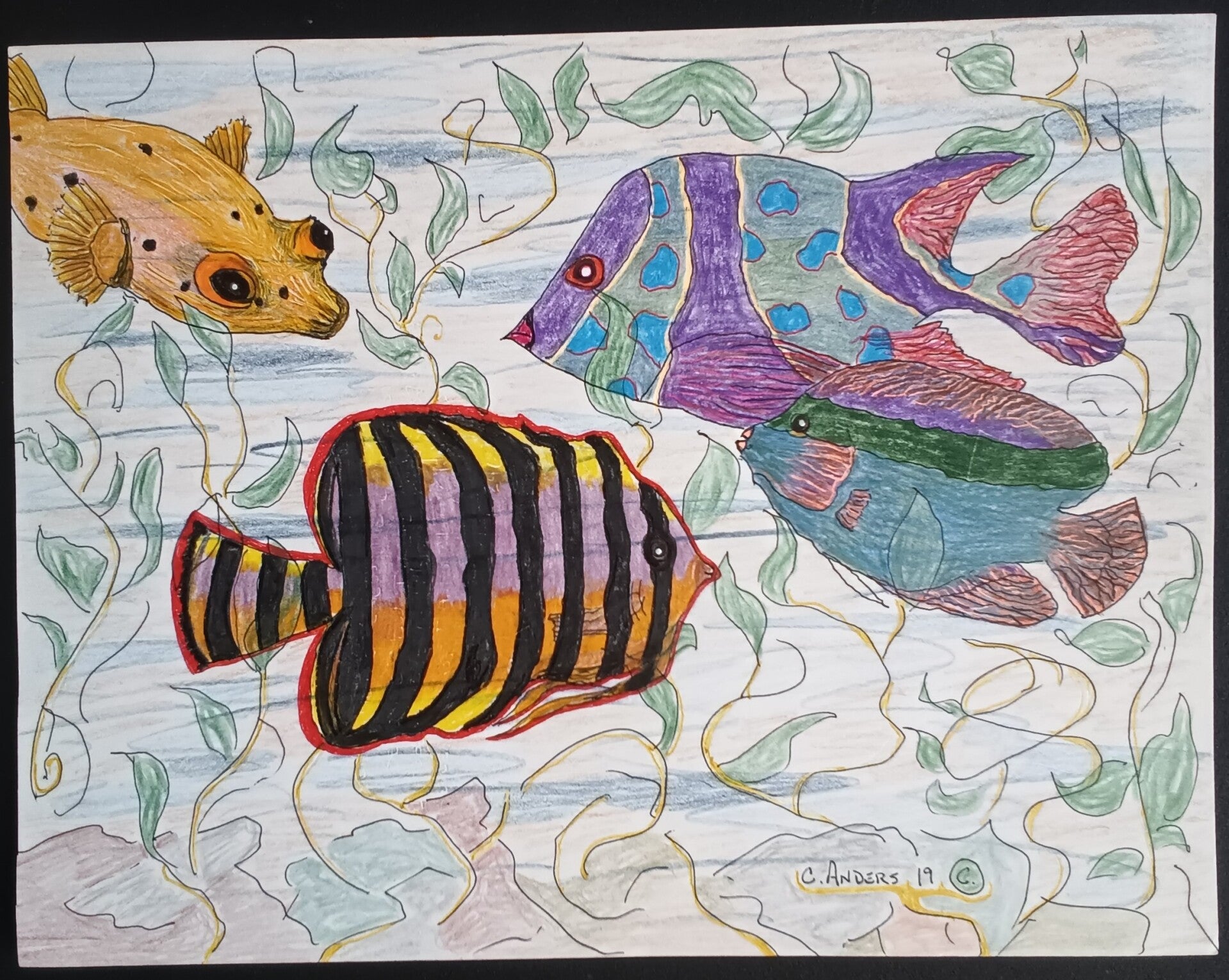 original drawing 9x12 inches ink and colred pencils on paper